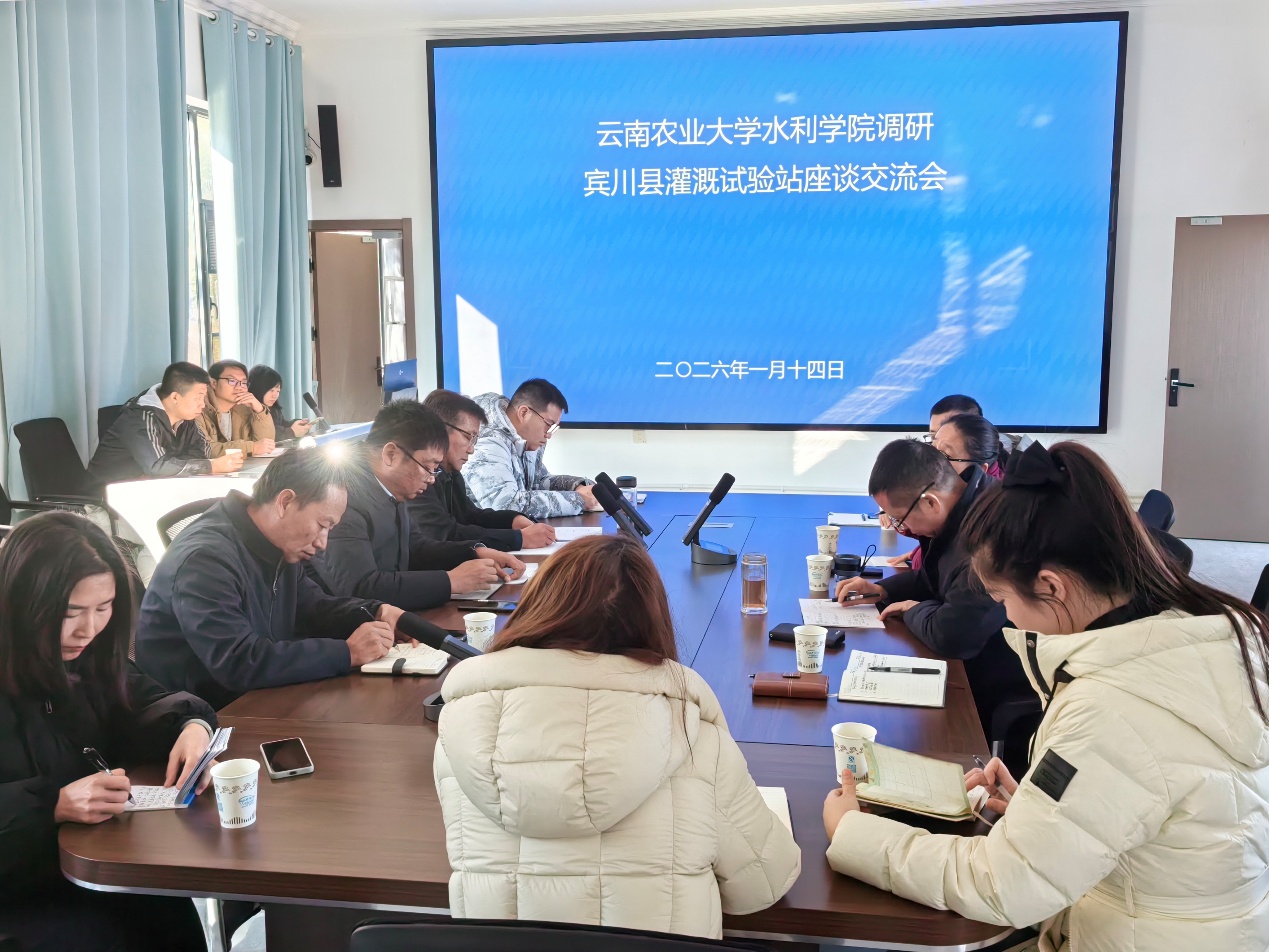 1月13日至14日,我院党委书记段青松教授带领农水系相关师生前往宾川县开展调研。学院师生首先前往宾川县水务局与相关工作人员展开了座谈,宾川县水务局局长李吉、副局长陈羿江等出席座谈会。座谈会上,双方就宾川灌溉试验站建设、灌溉实验开展及智慧灌区建设进行了深入洽谈,并就进一步深化合作、共同推动宾川县水利事业发展进行了交流。